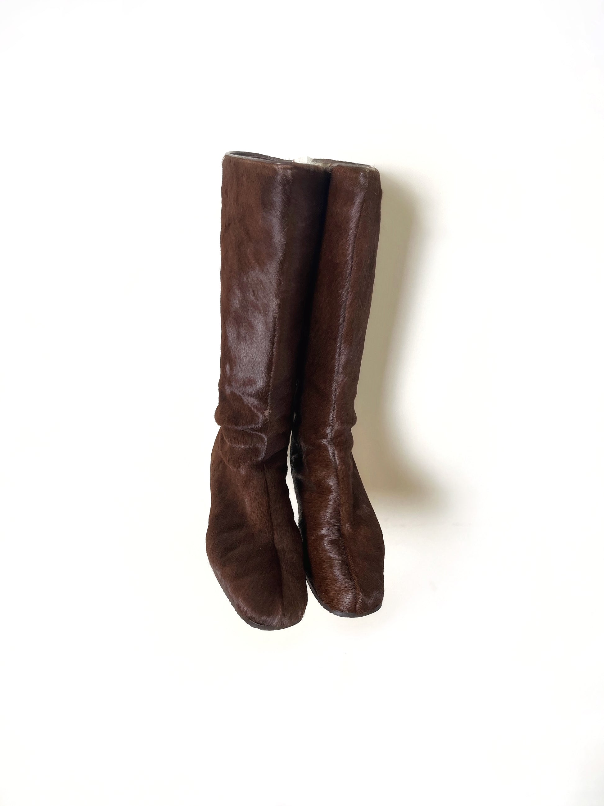 60年代のポニーレザーのハラコブーツです。ほぼ履かれていないと思われるほど美しいコンディション。リネンパンツをインしても、スカートでも。柔らかく、足が痛くなりにくいです。