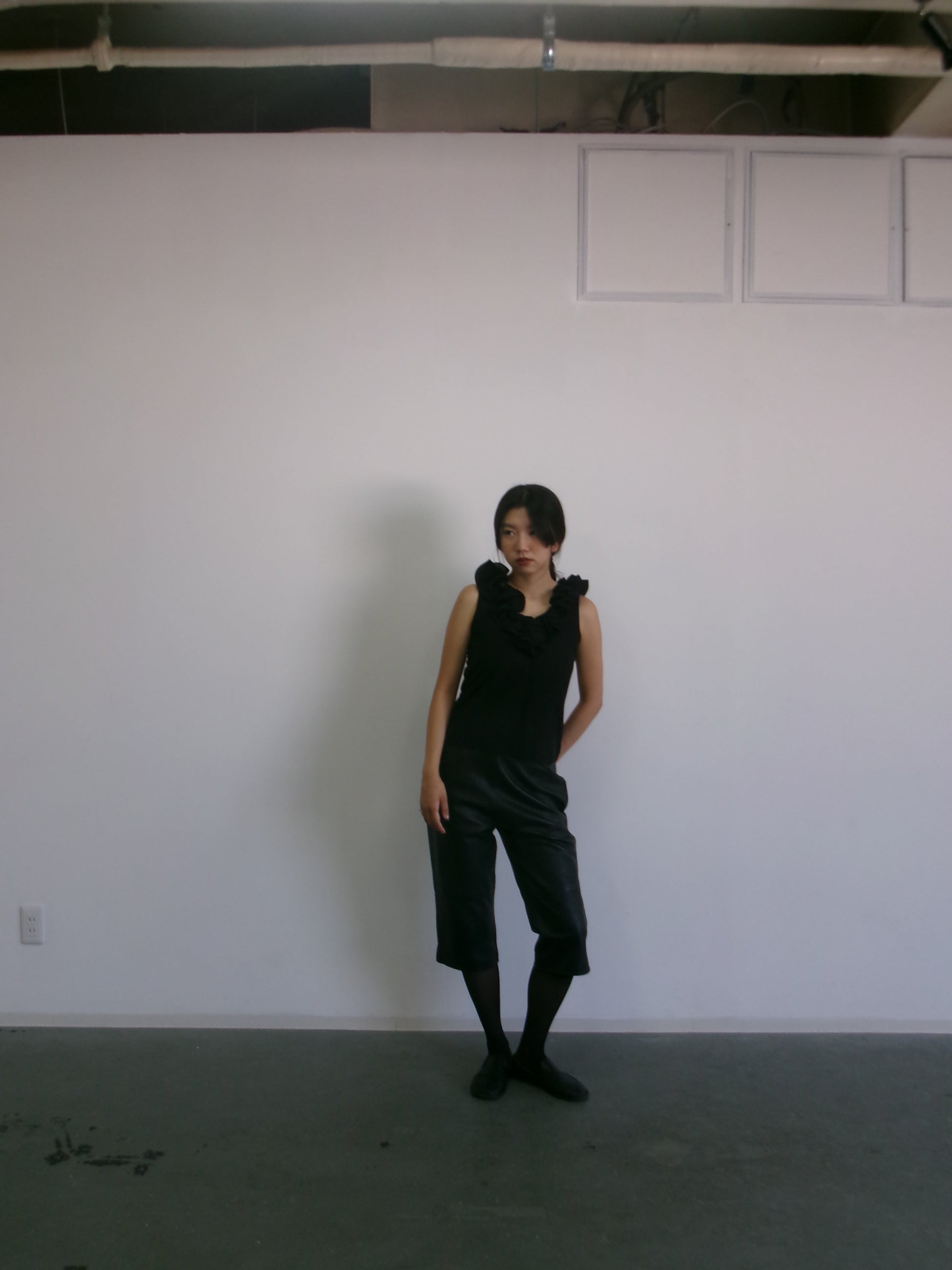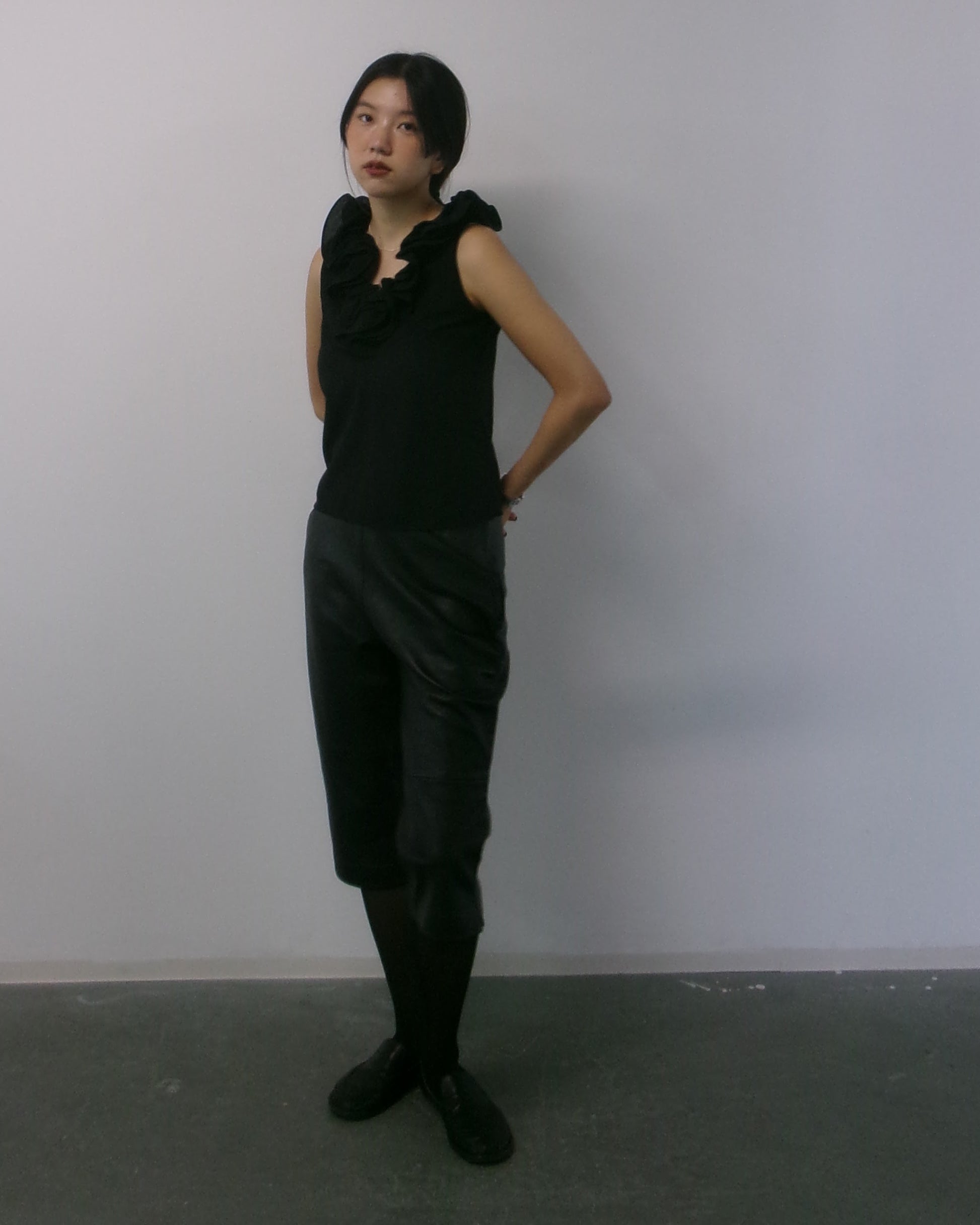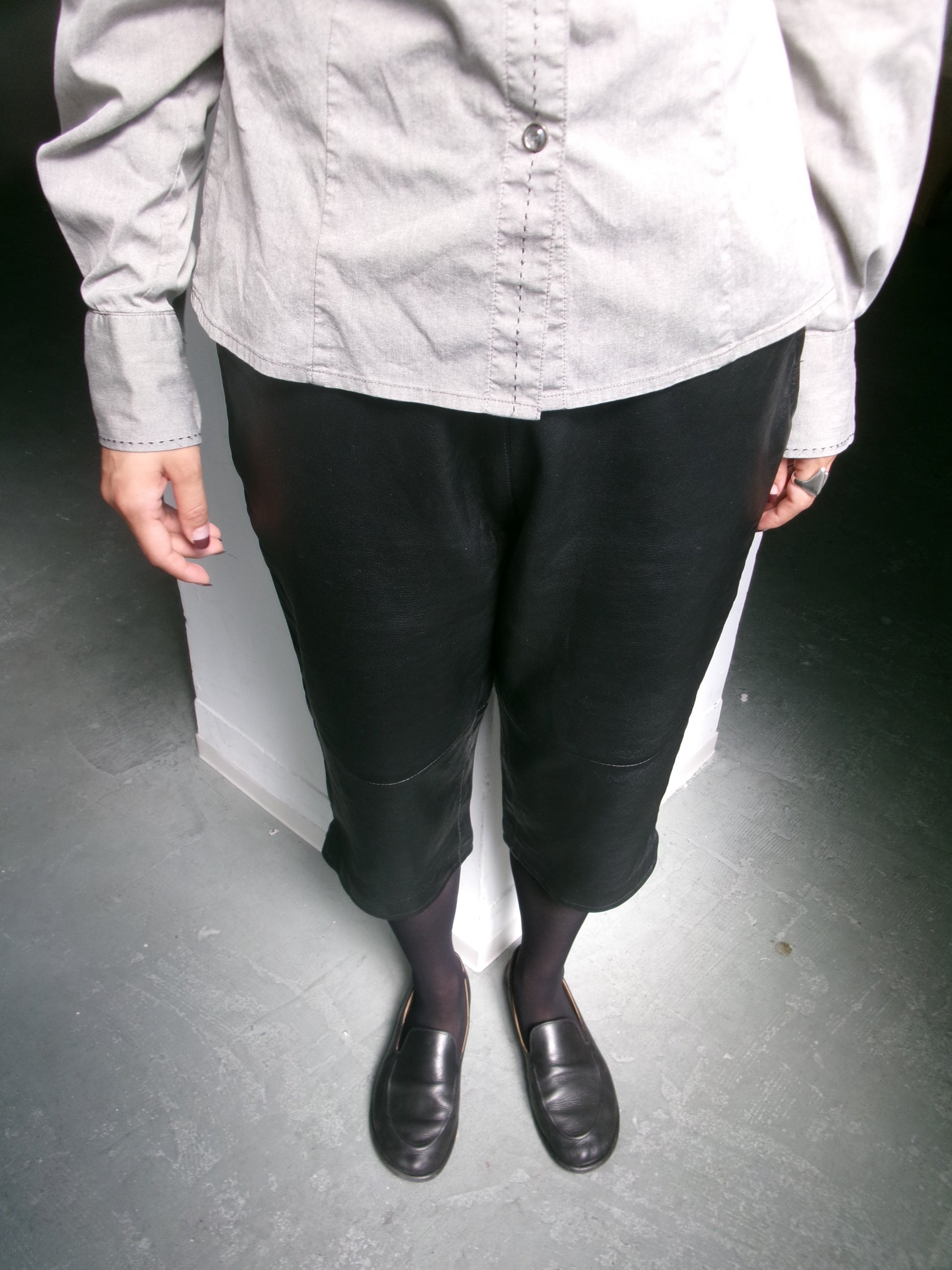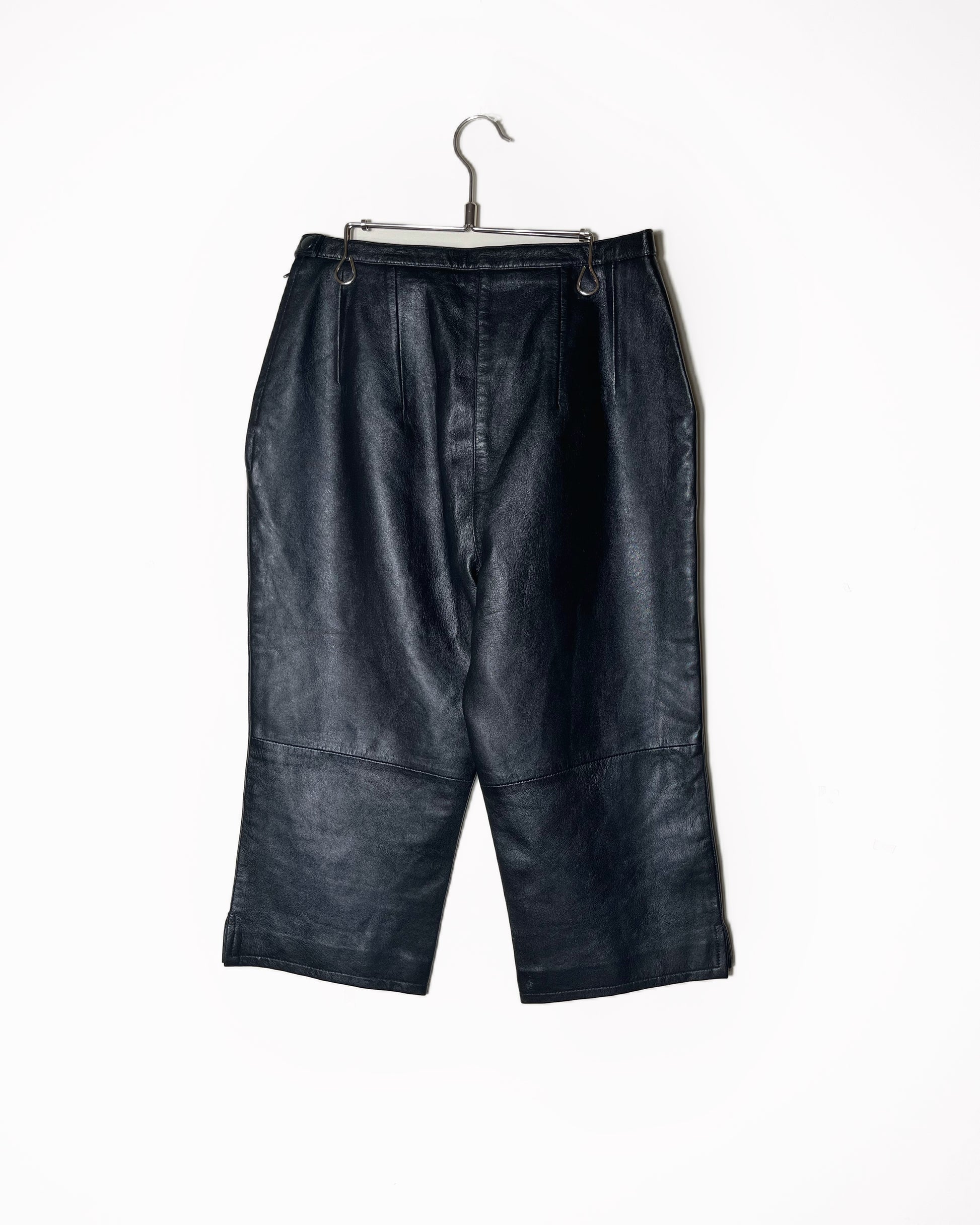 最高級品質のラムナッパレザーを使用したレザーカプリ。非常にきめの細かく、柔らかな手触りのレザー。膝下でカットされたクロップド丈のデザインは、90年台初頭のトレンド感を加えつつ、現代においてもタイムレスに美しく来ていただけます。