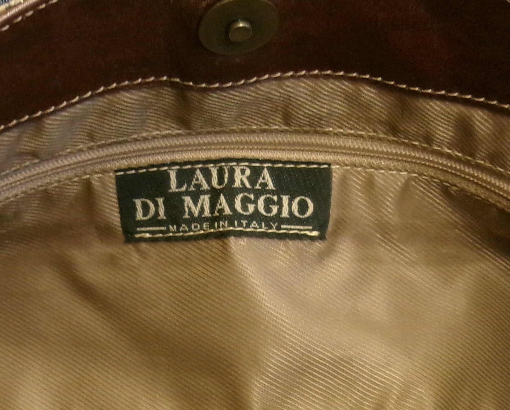 ミニサイズのパイソンレザーバッグ。ブラウンのハンドルとリボンを結うようなデザインがカジュアルさの中に上品さを残します。バッグの内側は汚れにくいナイロン素材となっております。一部にすれがございますため、お求めやすい価格にしております。