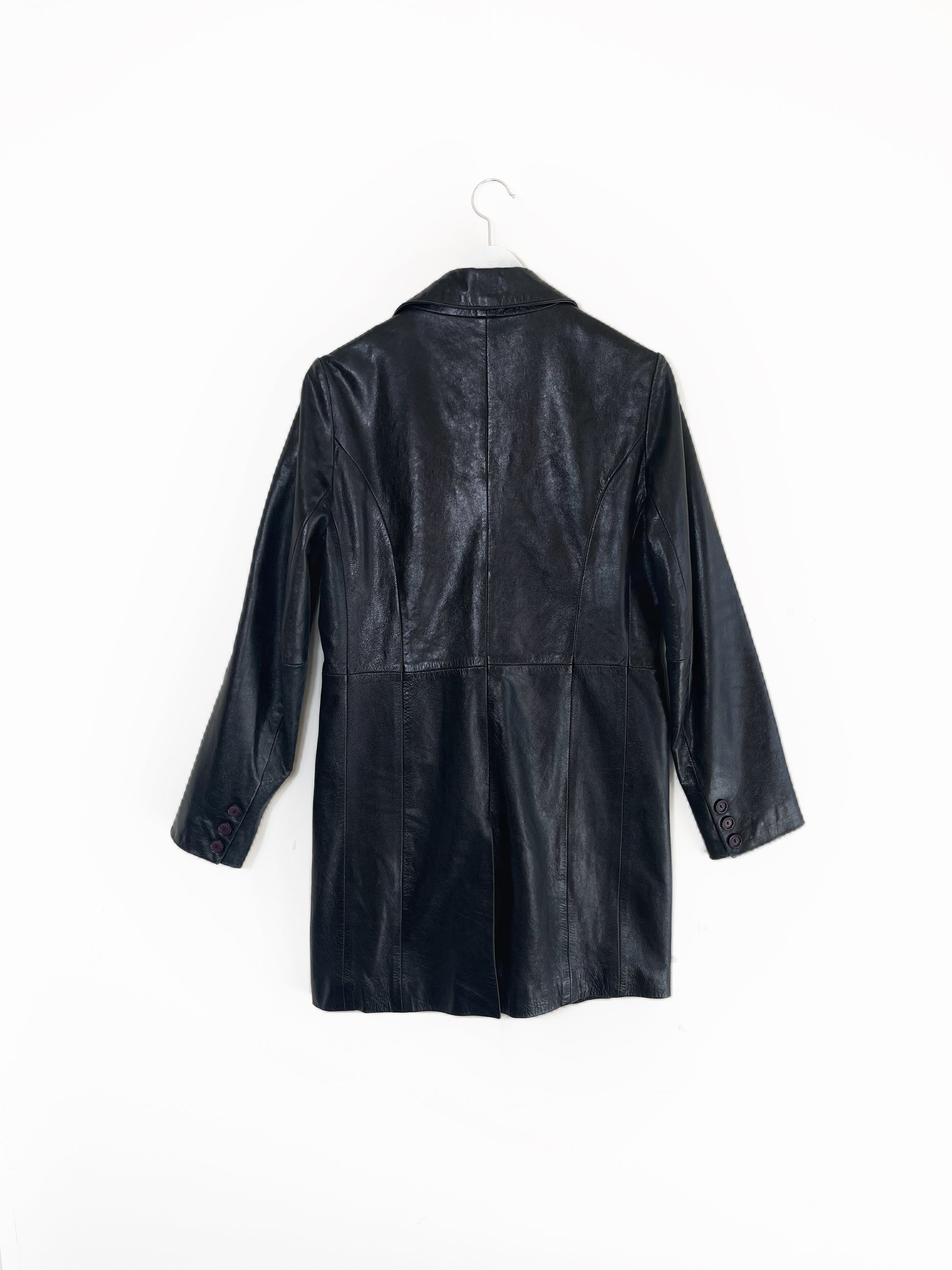 クラシックでミニマルな佇まいが印象的なシングルレザーコート。柔らかいモード感が90年代の都会的なスタイリングに際立ちます。ウエストにフラップポケット、背面にセンターベントのディテールが入ることで、シンプルながらも、スタイリッシュな印象に。