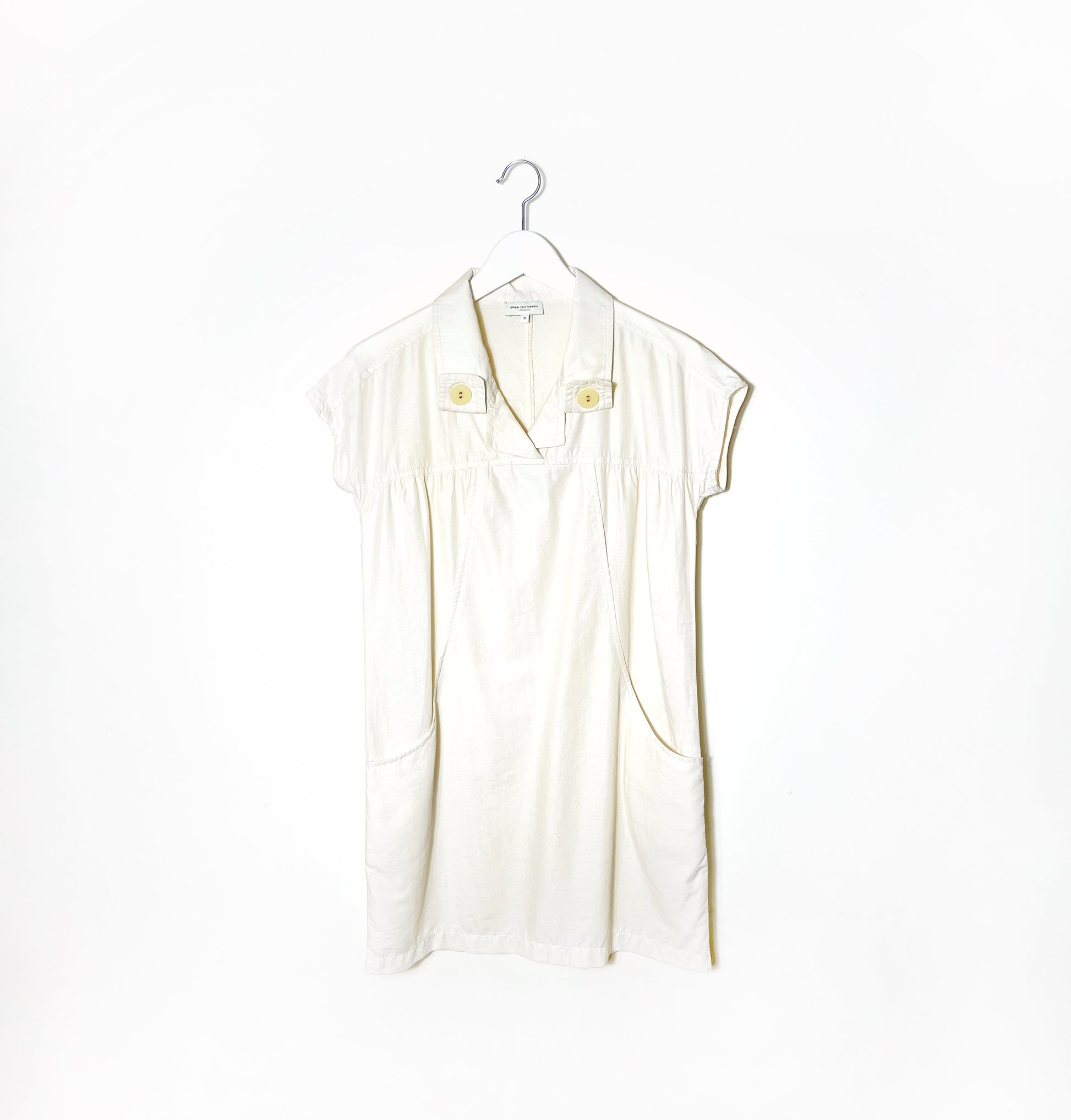 ドリスバンノッテンのアーカイブミニドレス。そのままでもレイヤードでも美しく楽しんでいただけます。襟元の遊び心のあるデザインが素敵です。肩幅や腕周りがタイトなお作りのため、小柄なかたへおすすめです。