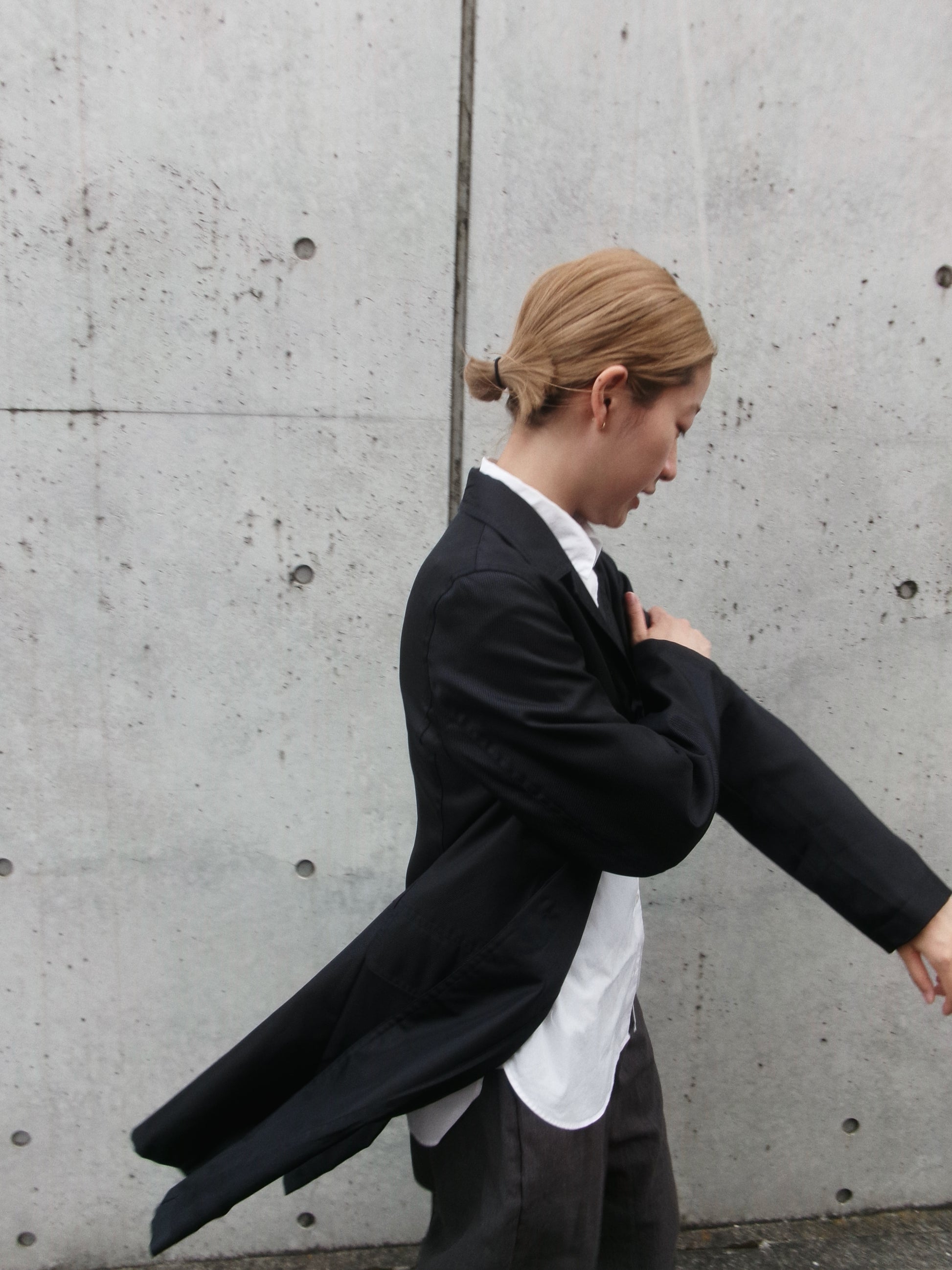 軽やかなダスターコート。薄手のためオールシーズン使用いただけます。光沢感のあるテキスタイルとスタンダードなシルエットが都会的な印象。切り返しやボタンのディティールも素敵です。肩幅がコンパクトなため、すっきりと着用いただけます。