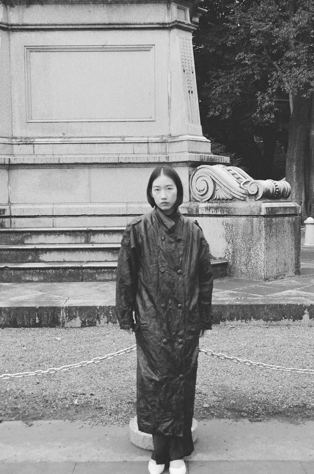 ボタンを留めれば彫刻のようなラインに。開けて纏えば、風を含んで静かに揺れる。