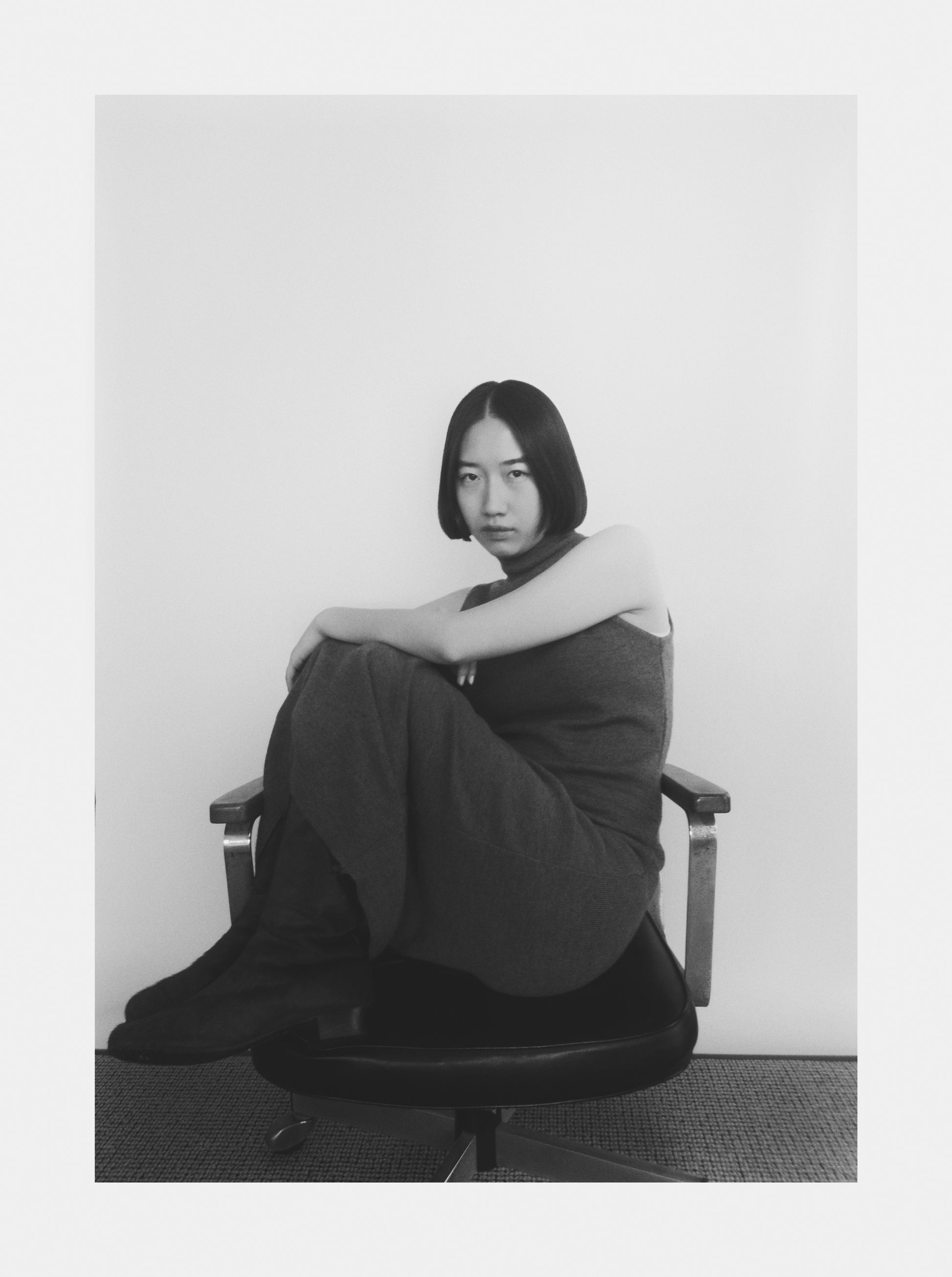 シンプルなハイネックに、無駄のないミニマルなシルエット。