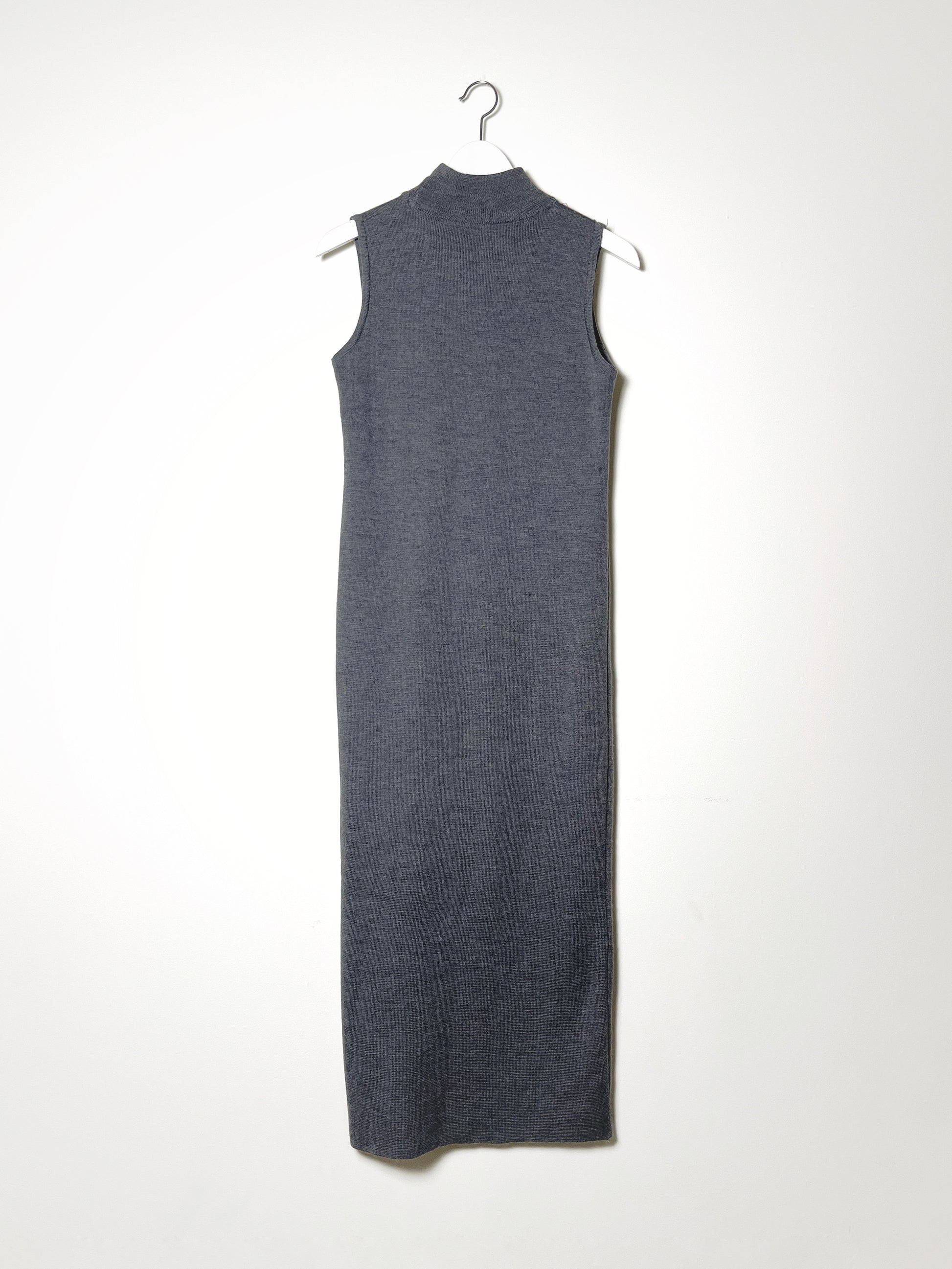 しっとりと落ちるニットの質感が美しい、ノースリーブのロングニットワンピース。